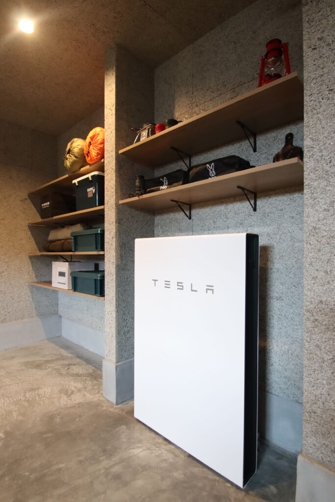 また本モデルでは、「テスラ蓄電池」と「インナーガレージ」を組み合わせた住まい方の可能性も検証。